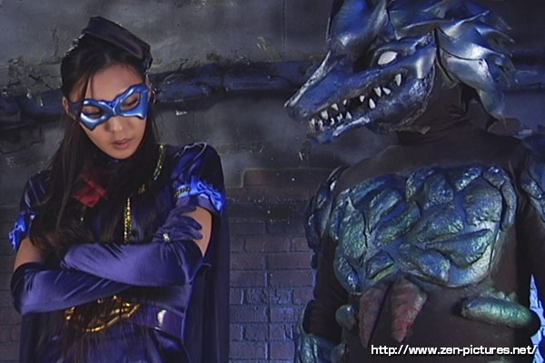 One of the highlights of this film is that you can enjoy watching great fights of two Wonder Alices in one volume, as a young girl and as an adult. Alice in her girlhood is played by Miss Yu Rishika, who is a real-life junior high school student. Though she was so busy, taking entrance exam for high school, cute and elegant Rishika-san agreed to join this project and gracefully played the part of a heroine, a beautiful masked girl. The heroine as a sexy adult is played by Miss Rika Kawamura, whose action scenes are gorgeous and powerful. And don’t forget Dark Alice played by Miss Ena Kawamura, real-life sister (?) of Rika-san. She is also impressive as a sexy villainess. If you like masked beautiful girl heroines, you should not miss this one because there are lots of great scenes for you to enjoy. ▲Close