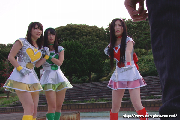 I am happy to introduce our new Sexy Series film starring young up-and-coming stars. The unique story is about three ordinary high school girls studying hard like any other students, but they transform into superheroines only during weekends. The three heroines are played by Miss Shuri Watanabe (as the group’s leader Red Clover), Miss Misaki Shiraishi (as Yellow Clover) and Miss Shiori Hamano (as Green Clover). The three leads all have unique personalities that perfectly match the characters they play, and these girls also show a great chemistry working between them. For the heroines’ costumes we chose skeleton skirts, which look not only cute but sexy and even provoking. Miss Yuna Hashimoto, also known as a panty stocking idol, plays a mysterious thief Ageha. Sexy and talented Yuna-san did a great work, which was quite an inspiration for younger actresses playing the heroines. So please enjoy watching the great adventures of the four cute and charming idols. ▲Close